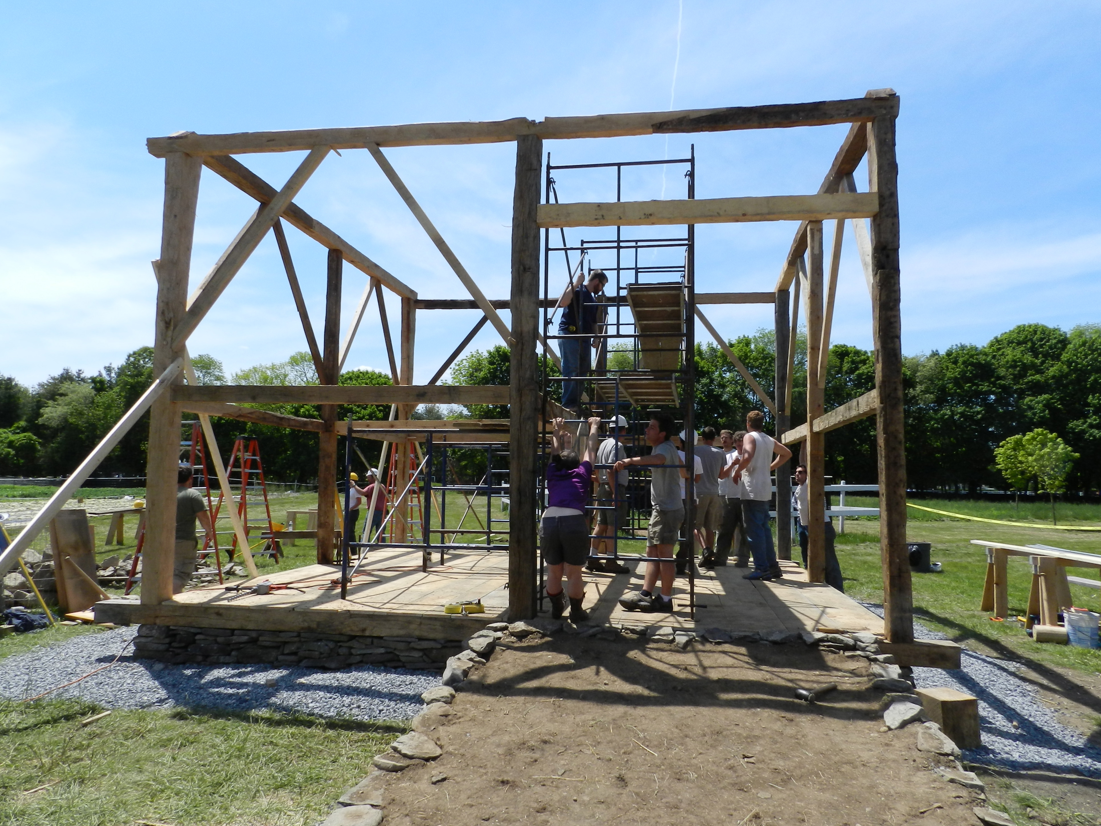 Primary bents are standing May 21, 2012 3860 × 2895 2 Bay English Style Barn Raising at Brookwood Farm Primary bents are standing Primary bents are standing