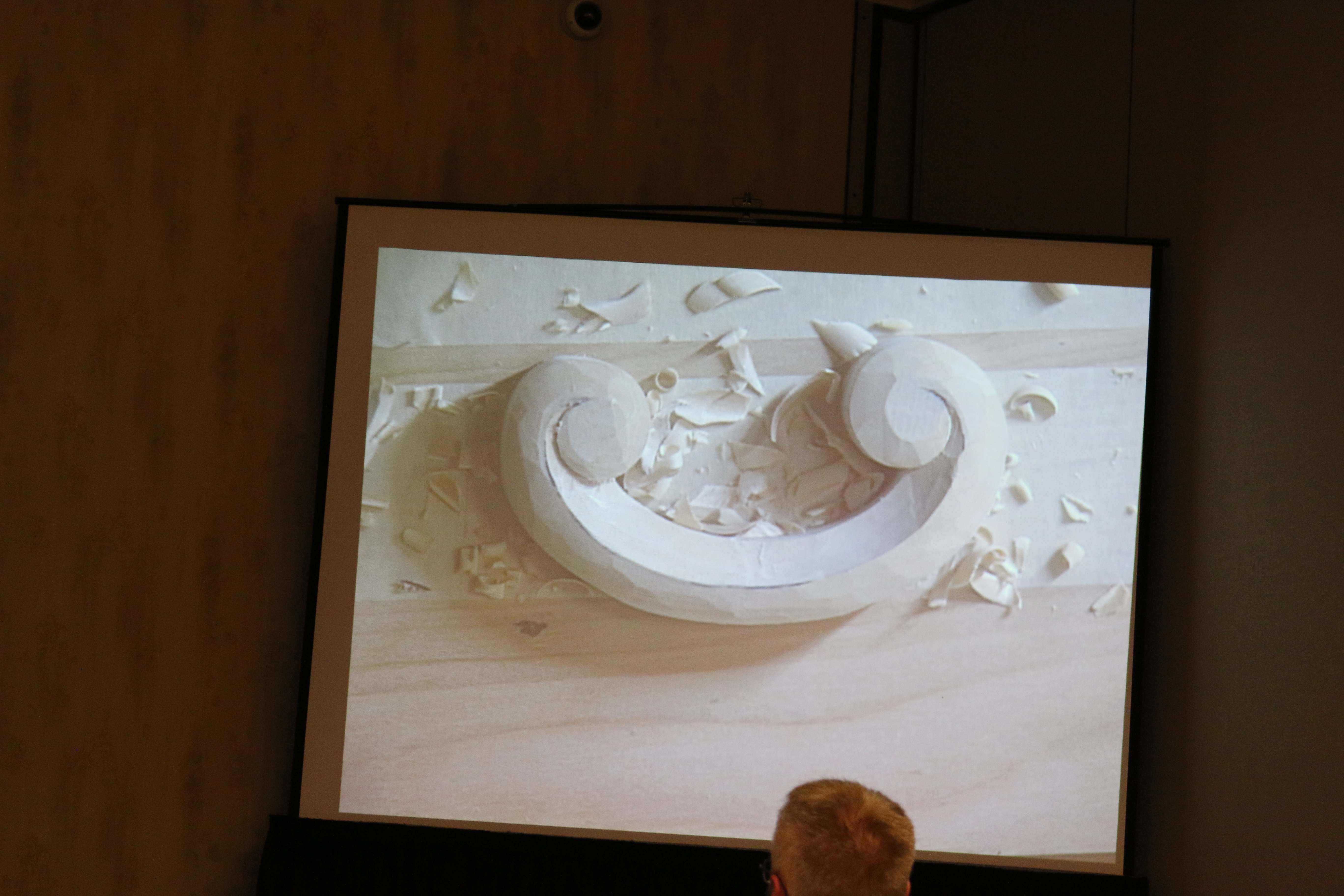 img_9148 September 28, 2016 5472 × 3648 Woodworking in America 2016 (Part 2) Mary May Carving a C-Scroll (Photo by Bill Rainford 2016)