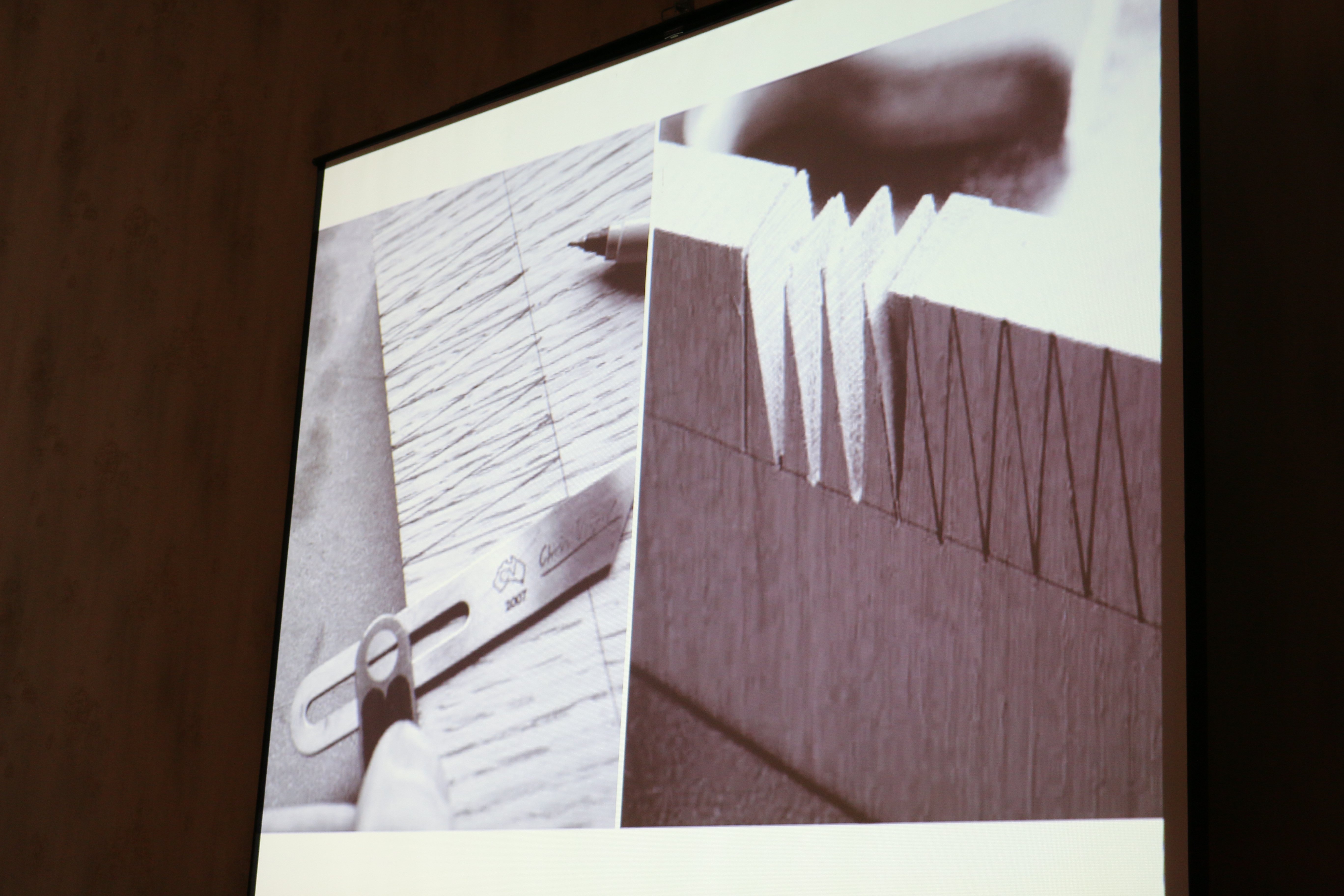 img_9197 September 28, 2016 5472 × 3648 Woodworking in America 2016 (Part 2) Chris cutting wedges for his chair leg tenons. (Photo by Bill Rainford 2016)