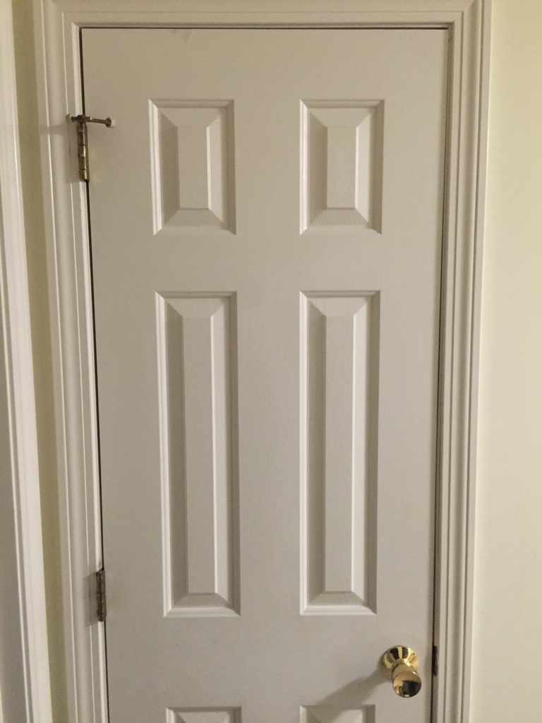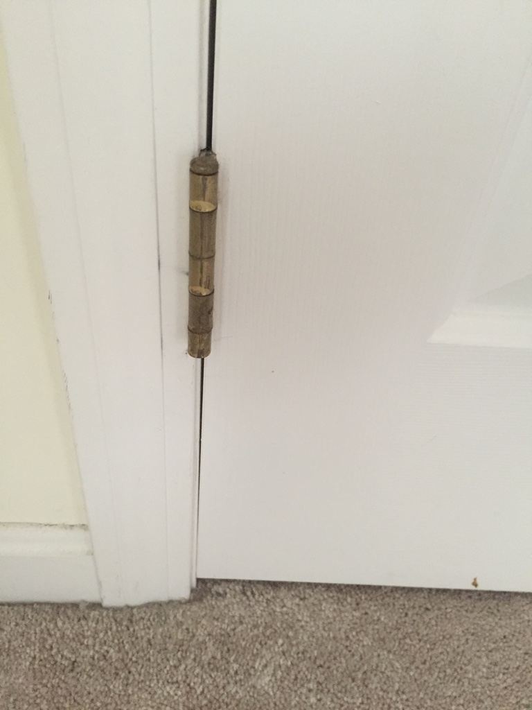 The above door is door to my upstairs hall closet. It rubs a little bit when you open or close it. Let’s take a look and see why.