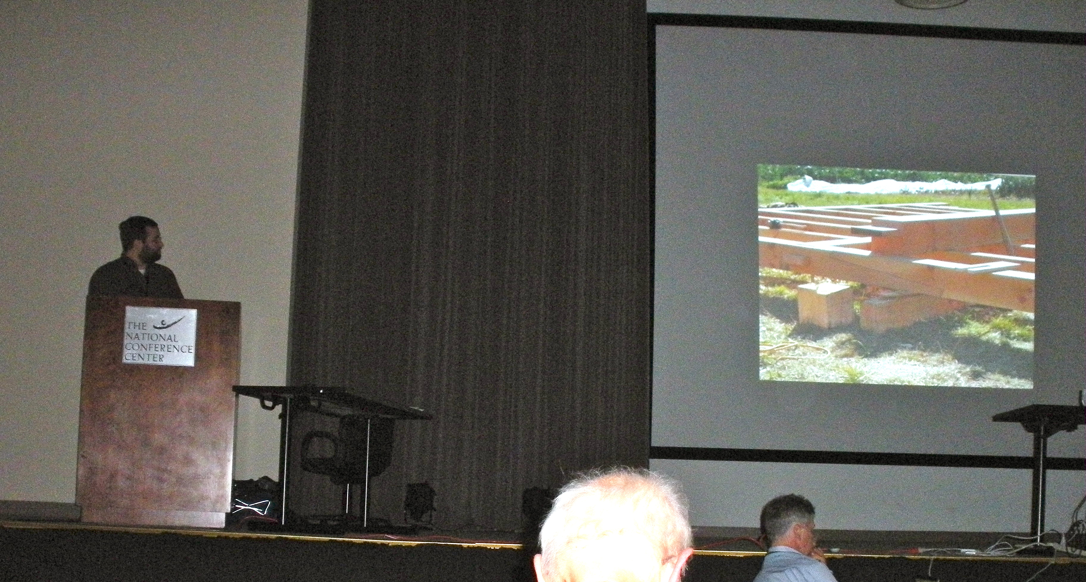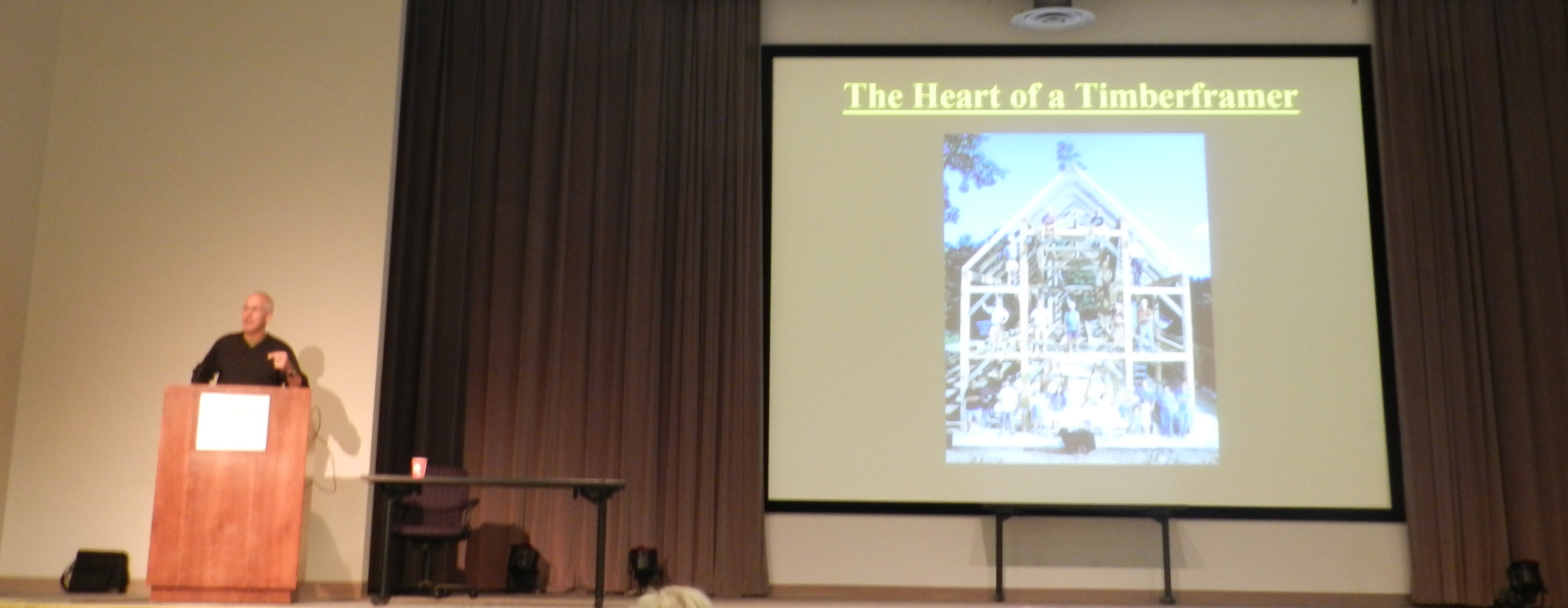 I was excited to get up on stage Friday night and talk about some of the timber framing work I did with NBSS. Shown below I was discussing the new square rule barn and also the historic ~1791 two bay English Style Barn we restored at Brookwood Farm in Canton MA.