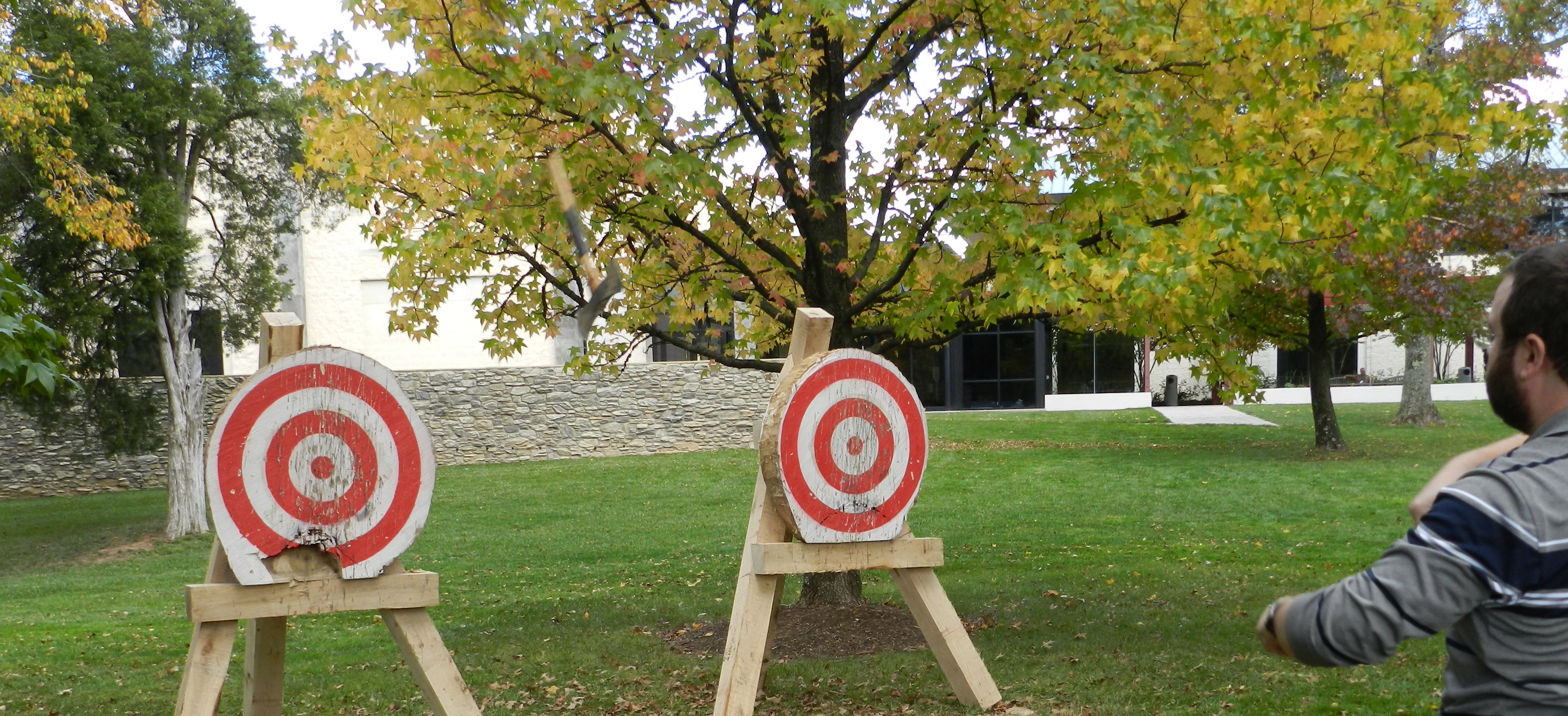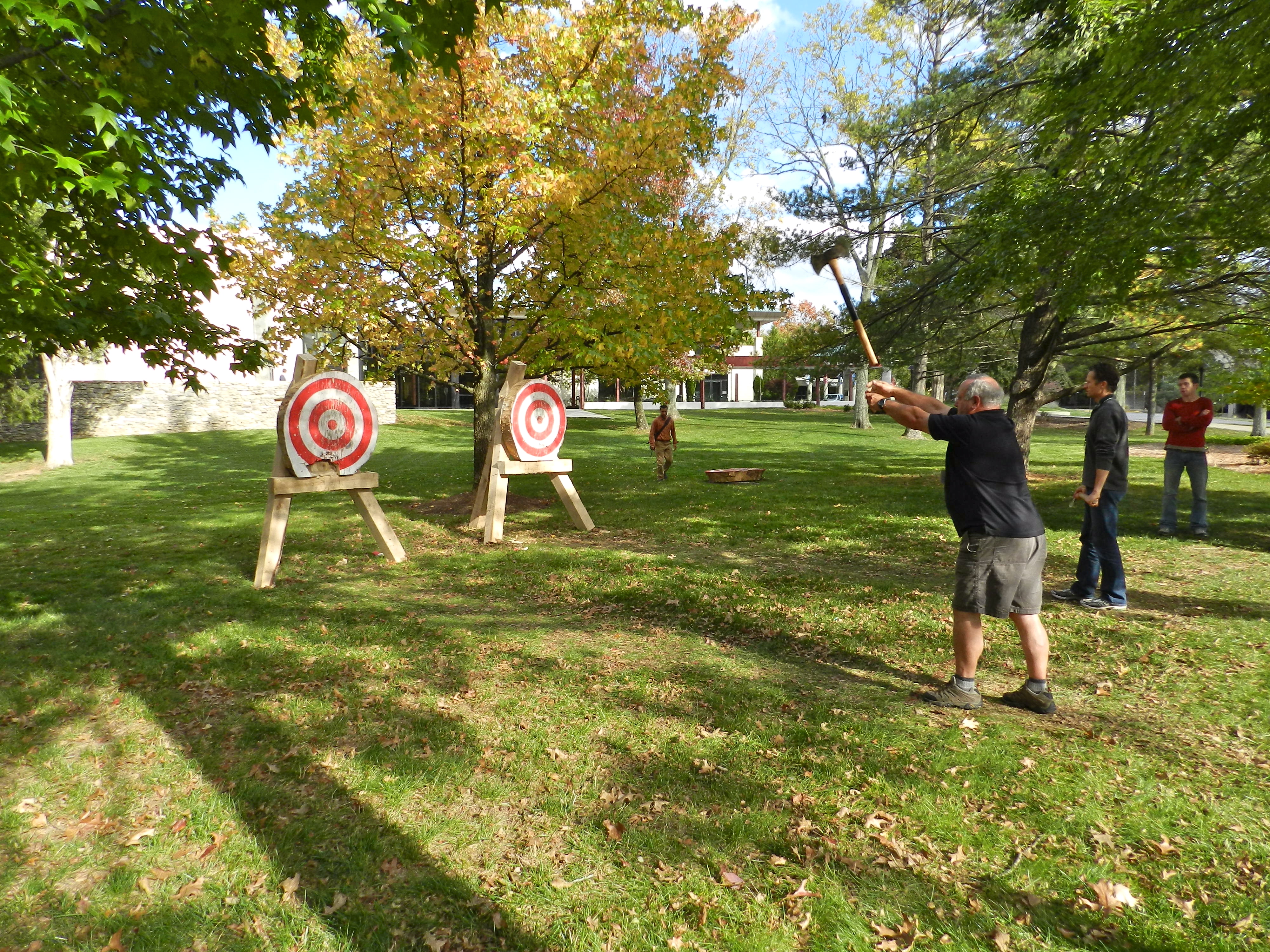 Outside the guild setup some targets and allowed us to practice our axe throwing before the big competition. I had never thrown an axe before, but after a quick lesson, it was a lot of fun and with a little practice we made some good shots.