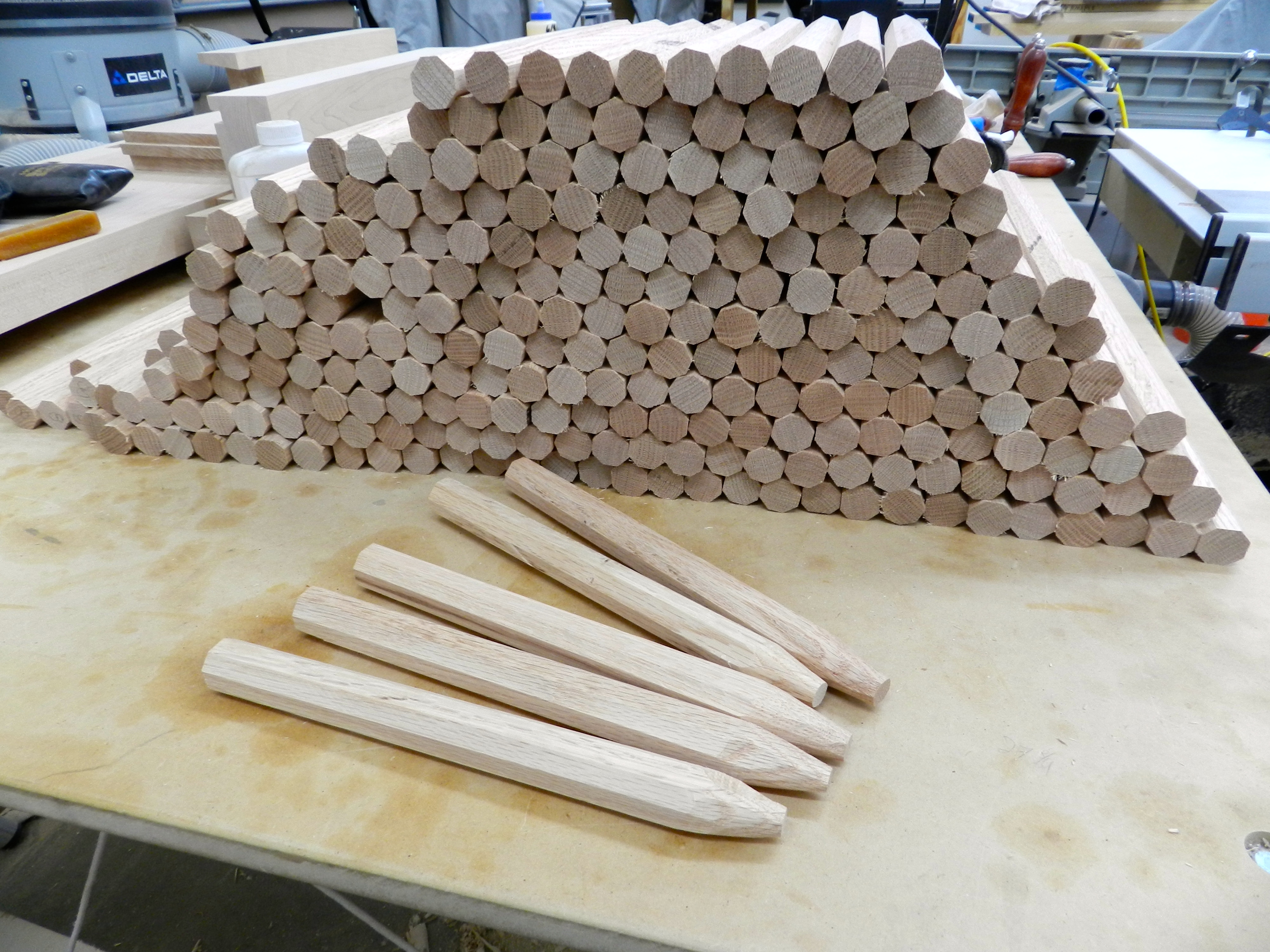 Treenails, Trunnels, Pins and Pegs — all terms used to describe the wooden nail-like fastener used in timber frame construction. I needed to make a large number of them for an upcoming project and thought you might also enjoy seeing what it takes to make these deceptively simple looking pins.