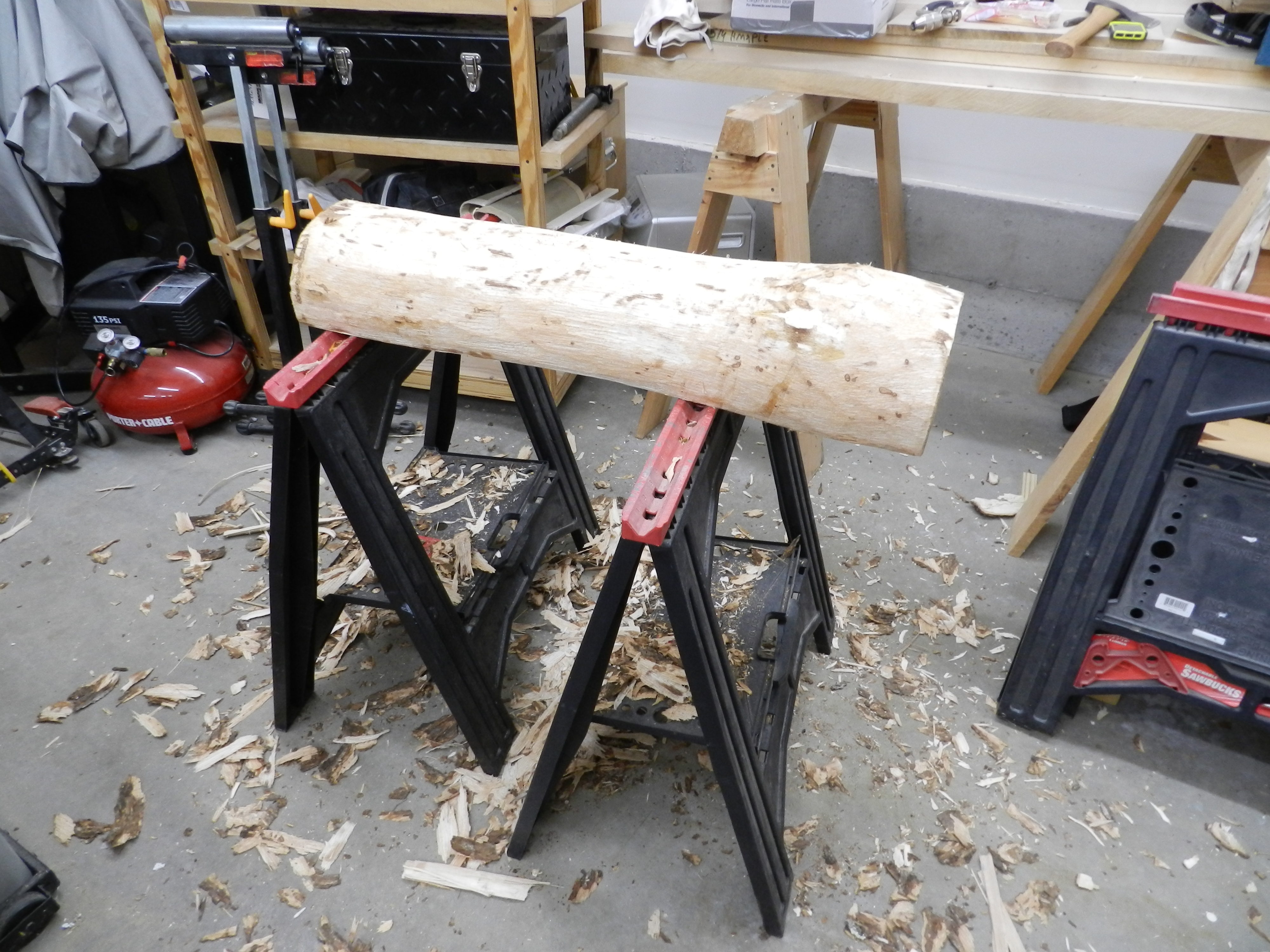 I then brought my wood into the heated shop as we were getting some snow and stacked them as you see above. This was a big mistake as I’ll describe later. I planned to be out there the next day but with snow and a baby in the house they sat out there for a week. If you bring sopping wet/green wood into a heated shop, make sure you sticker them so air can flow around all the edges and the wood can dry evenly.