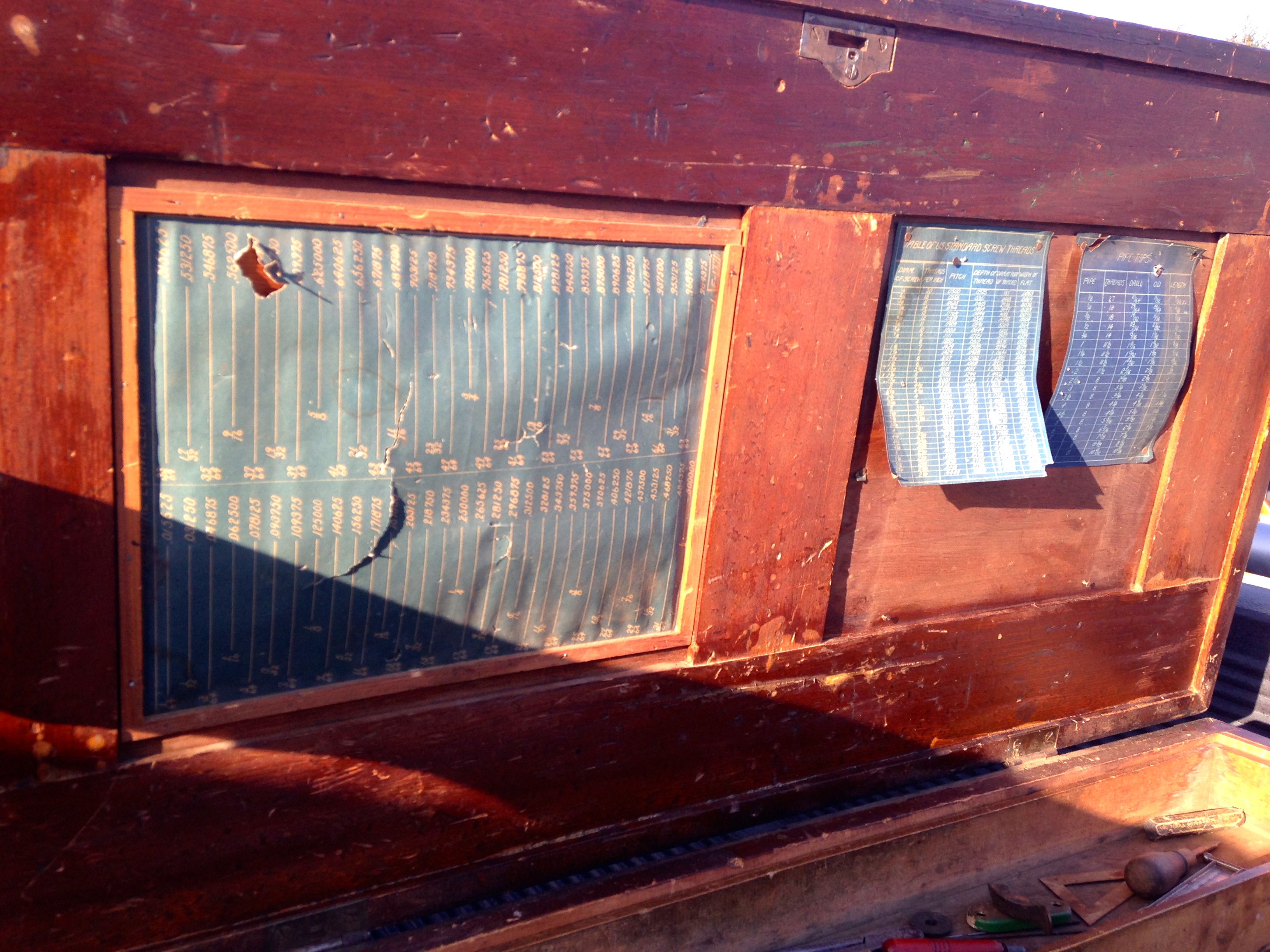 Inside the paneled top there were some great old reference/conversion tables tacked into place.
